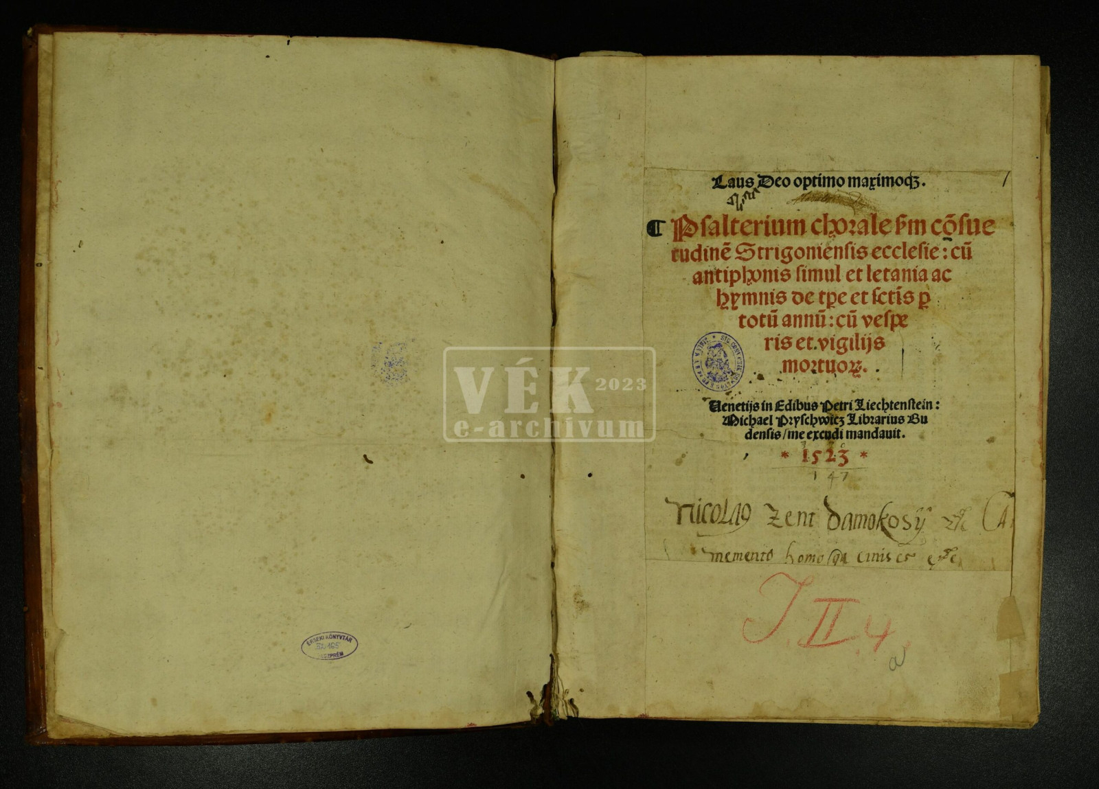 A Veszprémi Érseki Könyvtár az esztergomi psalterium második kiadásából őriz egy példányt. A munka Michael Pryschwicz budai könyvárus megrendelésére készült Velencében, és 1523-ban Petrus Liechtenstein kiadásában látott napvilágot. A kötet nem teljes, a 11–12. és 142–144. fóliói hiányoznak, erősen megrongálódott lapjait javították.