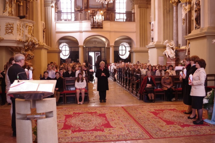„A lelki adományok ugyan különfélék, a Lélek azonban ugyanaz. A szolgálatok is különfélék, de az Úr ugyanaz... A test ugyan egy, de sok tagja van. A testnek ez a sok tagja mégis egy test. Így van ez Krisztussal is…” – hangzott a pünkösdvasárnapi mise szentleckéjében. S így van ez a helyi közösségekkel is: a sok kis csoport, mozgalom, imakör egy egyházközösséget alkot, egymást kell, hogy segítse. Ennek kifejezéseképpen a szóban forgó pozsonyi misében az egyes csoportokat képviselő személyek ünnepélyesen egy-egy gyertyát vehettek át, amelyeken a Szentlélek hét ajándéka volt feltüntetve. Közben az alábbi fohászok hangzottak el: