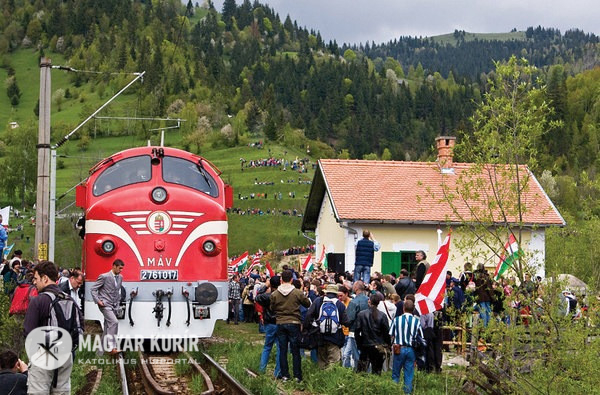 11.53: Boldogasszony zarándokvonat érkezése a gyimesbükki vasútállomásra