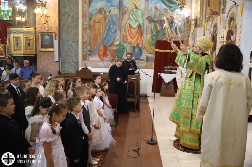 Pünkösdvasárnap nemcsak a Szentlélek eljövetelét ünnepelték a hívők a debreceni Istenszülő Oltalma görögkatolikus főszékesegyházban, hanem azt is, hogy ötven gyermek lett elsőáldozó.