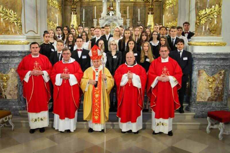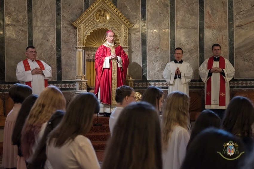 Udvardy György megyéspüspök a pécsi Szent Péter és Szent Pál-székesegyházban mutatott be ünnepi szentmisét, melynek keretében kiszolgáltatta a bérmálás szentségét.