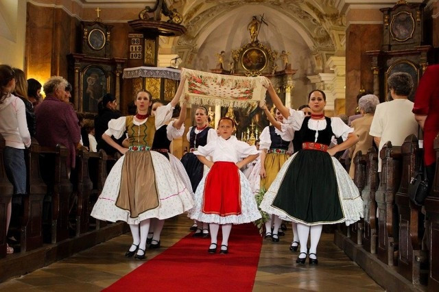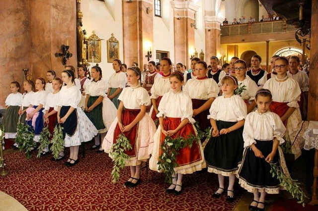 A táncos fiatalok az esti szentmisén részt vettek, majd énekelve vonultak a templomkertbe.