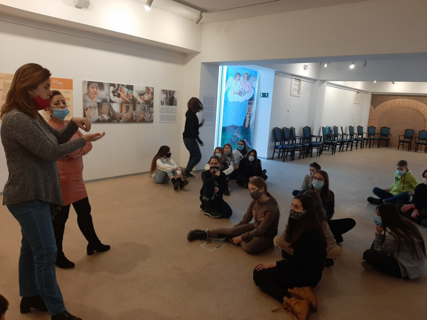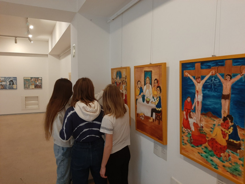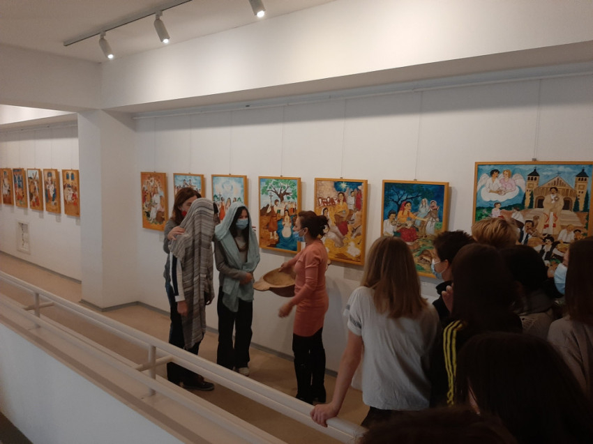 A kiállításhoz kapcsolódó foglalkozáson a festmények–történetek–szerepjátszás egységében oda lehet vinni a résztvevőket a fontos tartalmakhoz. A festmények előtt a gyerekek és tanáraik szerepbeléptetésével megelevenedik egy világ, amelybe Mária és József is belép, később Cinka elkerül a Jordán folyóhoz, János elé...