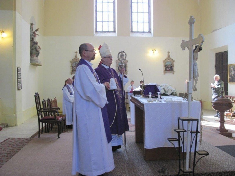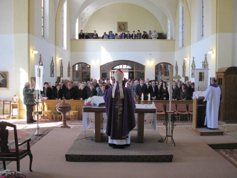 A kislángi katolikus templom 1907-1908-ban épült fel. Zichy János, a volt nagybirtokos jelentős adománnyal segítette a templomépítést. Az építőmester a székesfehérvári Szabó Ferenc volt. 1908. május 17-én fejeződött be az építkezés, e napon helyezték fel a keresztet a toronyra. A templomot 1908. október 18-án szentelte fel Prohászka Ottokár székesfehérvári megyéspüspök. Ezen a napon Kislángon bérmálást is tartottak. A főoltárt, az orgonát és egy harangot Zichy János vásárolta a templom számára, a szószéket Zichy Gyula pécsi püspök adományozta.