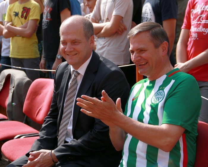 A szalag átvágása után Schönberger Jenő püspök megáldotta a felújított sportpályát, majd megkezdődött a mérkőzés, melyet a főpásztor már a Fradi elnökétől kapott személyre szabott mezben nézett végig.
