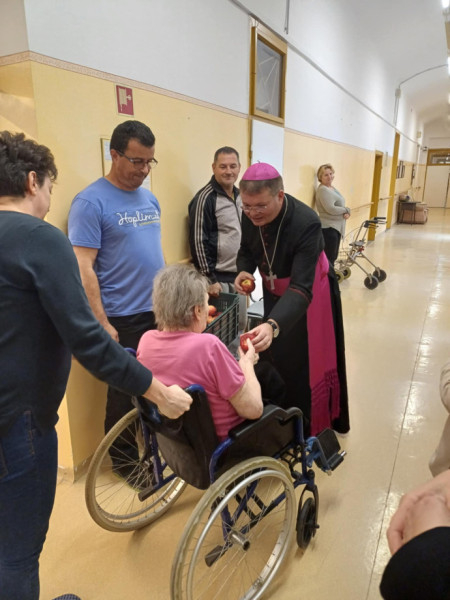 A szentmisét követően a szombathelyi segédpüspök végiglátogatta az intézmény lakóit, ajándékul adva nekik a szeretet megosztásának jelképeként egy-egy almát. Látogatása erőt adó találkozás volt a lakók számára.