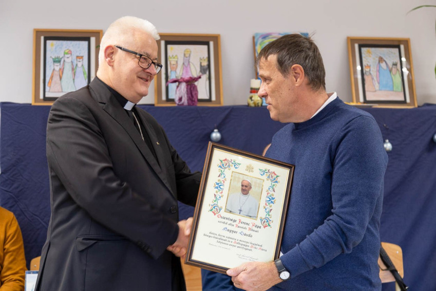 Spányi Antal püspök kedves szavakkal köszöntötte a szentkristófosokat, és azt kívánta, karácsony örömét és békéjét találják meg a szívükben, és adják tovább szeretteiknek.