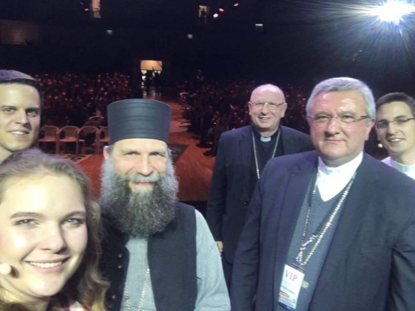 Riesz Domonkos negyedéves papnövendék és Schotti Ágota moderátor kezdeményezésére a három főpásztorral, a háttérben a Panama-napon részt vevő fiatalokkal az IVT magyar zarándokcsoportját szelfivel üdvözölték.