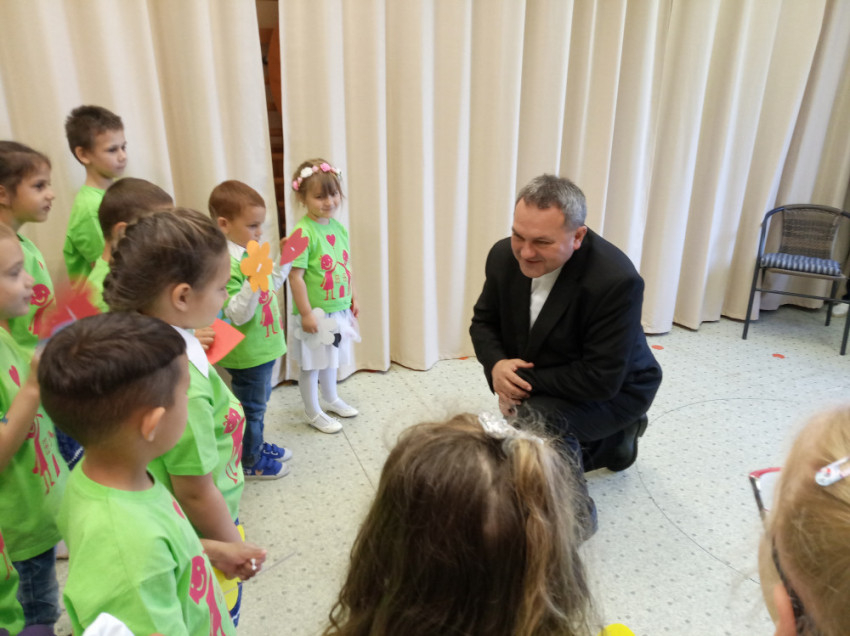 Tóthné Károly Mónika, az intézmény vezetője köszöntötte a főpásztort. Az óvodalátogatáson Hegedüs János plébános, püspöki biztos is jelen volt.