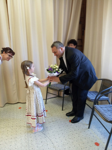 A főpásztor, miután bejárta az épületet, személyes beszélgetés keretében ismerkedett meg az intézmény dolgozóival, az ott folyó nevelési munkával, terveikkel. Kifejezte, érezhetően áthatja az óvoda légkörét a dolgozói közösséget jellemző összefogás, a gyerekek iránti őszinte szeretet.