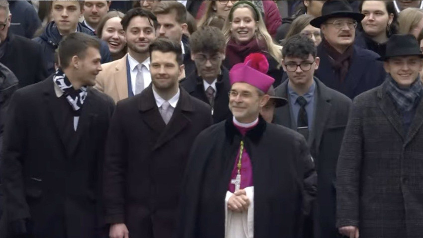 A Pummerin-harang megszólalása után a szentelendő belépett a székesegyházba, ahol a székeskáptalan tagjai köszöntötték.