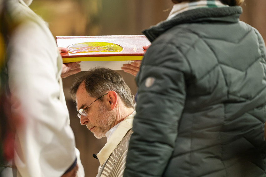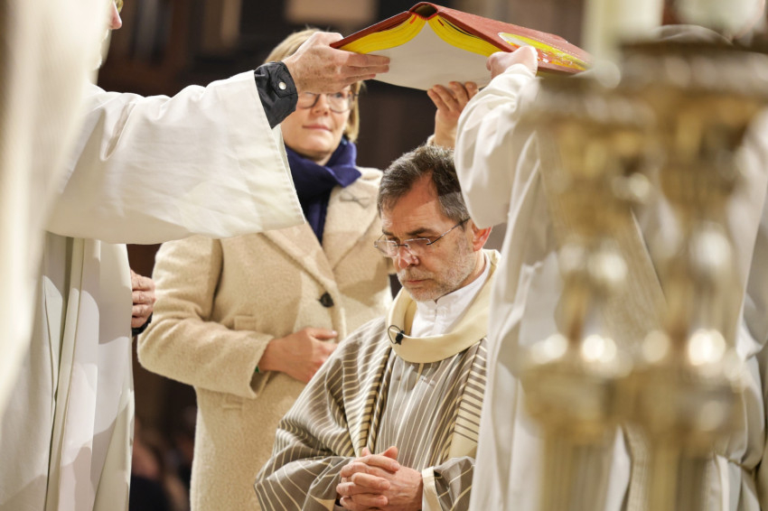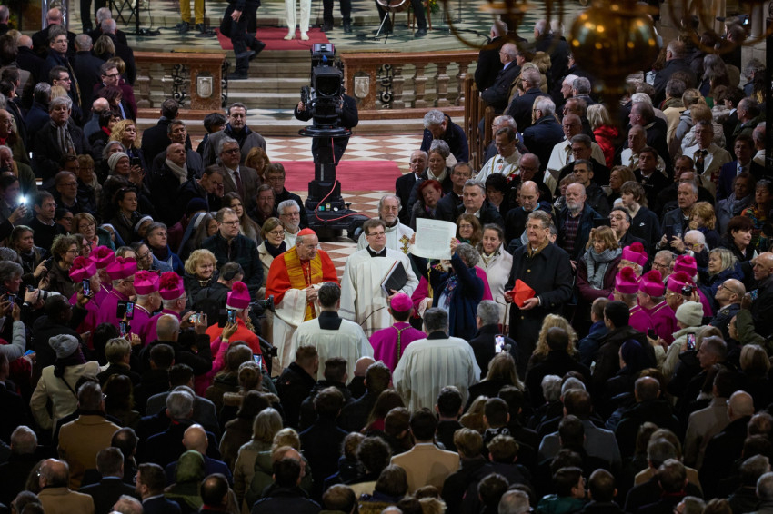 Josef Grünwidl a hívek között, a keresztelőmedence mellett állt, miközben felolvasták a pápai kinevezési levelet.