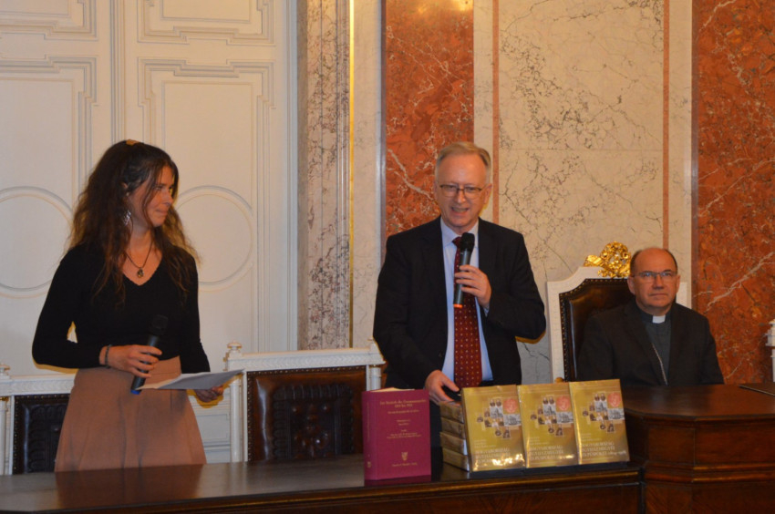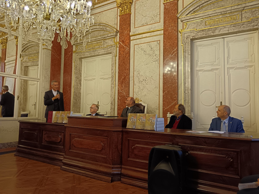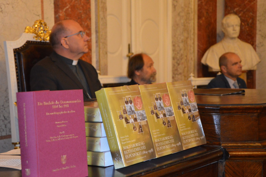 Szirtes Zsófia tolmácsolásával mondott beszédet a nemzetközi projekt vezetője, Rupert Klieber, a Bécsi Egyetem professzora. Kifejtette, hogy a Berlinben 2020-ban megjelent német nyelvű Bischofslexikon javított magyar kiadása részletes életrajzokat tartalmaz 129 püspökről, illetve 170 hivatali időszakot vázol fel, mivel minden negyedik püspök egy másik, többnyire magasabban javadalmazott egyházmegyébe lépett elő. Így először lehet teljes képet adni a magyarországi felsőklérusról, és ezáltal értékes ismereteket szolgáltatni az ország komplex szerkezetéről egyháztörténeti szempontból.