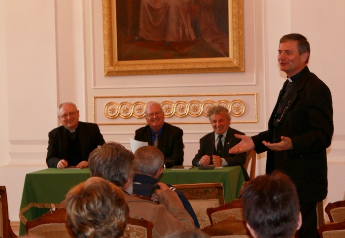 Hársfalvi Ottó általános helynök a könyv szeretetéről beszélt, a nyomtatott sajtó szükségességéről, az olvasás öröméről. Fazekas Lóránddal kapcsolatos emlékeit is felidézte, majd méltatta a kutatómunkát, a hiánypótló kötetet: „Ha ránézünk egy püspöki címerre, akkor lesz igazán érdekes, ha értjük is azt. Érdemes ezt a könyvet hittanórákon, különböző rendezvényeken is bemutatni a fiataloknak, mert részét képezi egyháztörténetünknek. Ha elolvassuk, látjuk, hogy püspökeink nemcsak az egyházért hoztak áldozatokat, hanem a városért is. Én mint az egyházmegye papja, örömmel vettem a kezembe ezt a könyvet.”