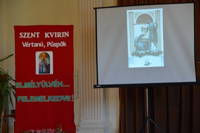 Taschner Tamás a soproni Szent Kvirin hagyományokról, emlékekről beszélt. Szent Kvirin Sopronból „került” Savariába. Több olyan helyszín – templomok festményei –, illetve hagyomány van Sopronban, ami a szenthez köthető.