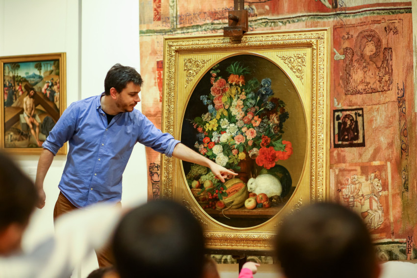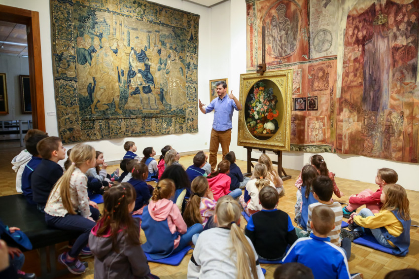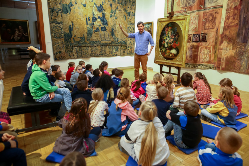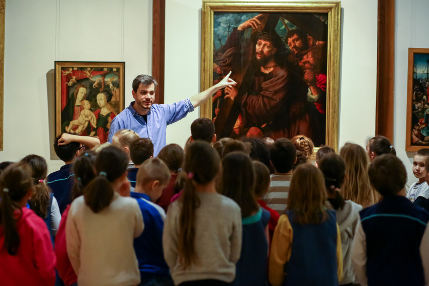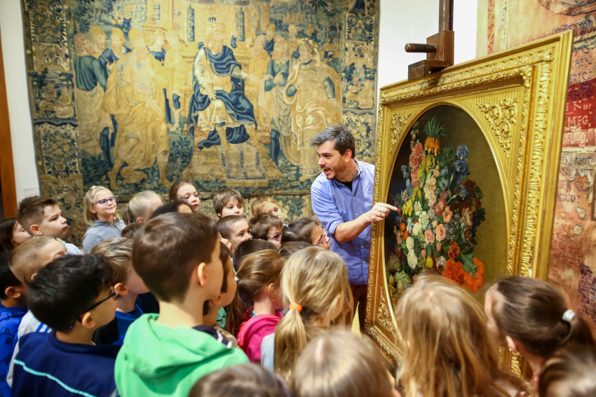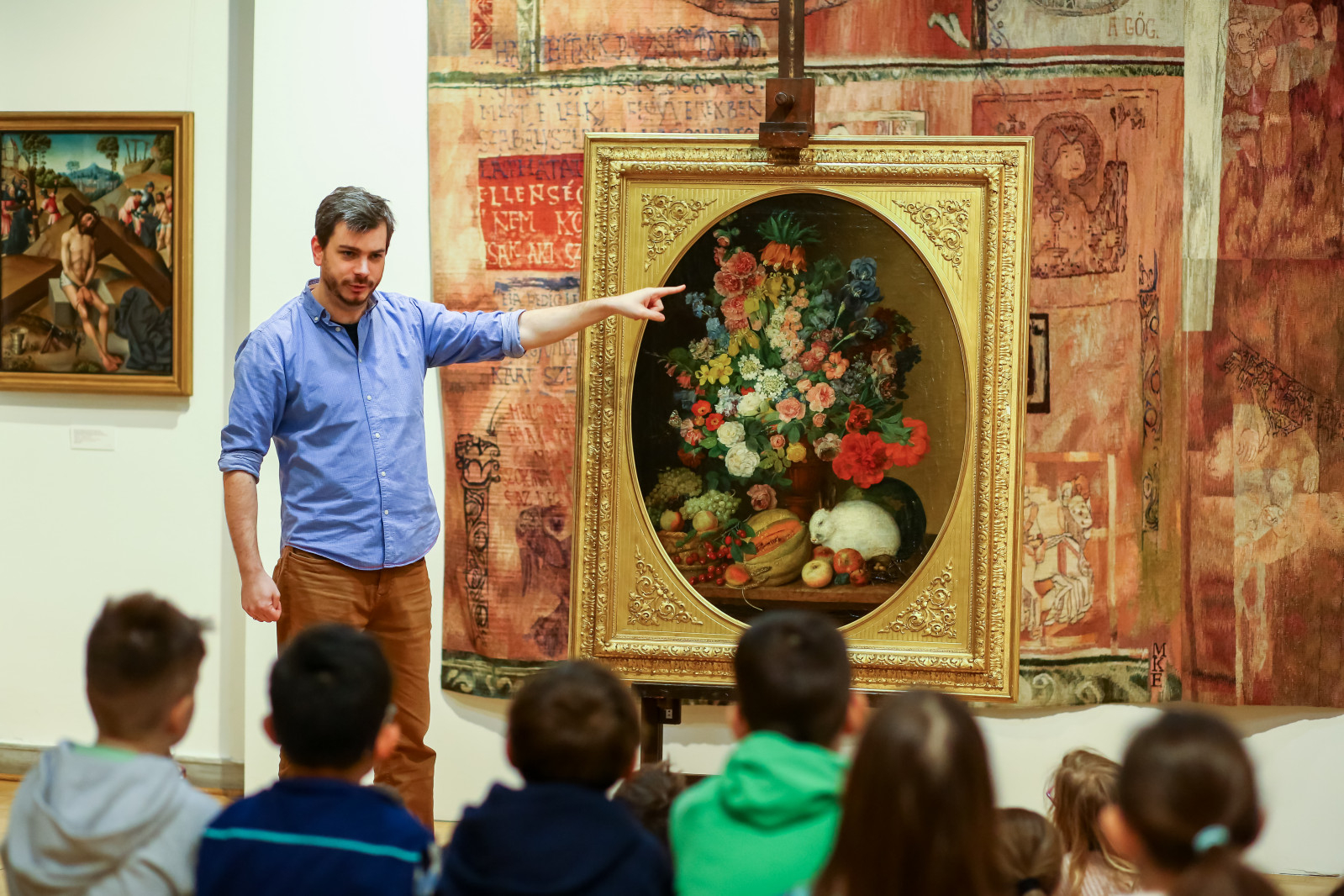 „Ebből az iskolából hatodik éve hozzák a múzeumba a gyerekeket a tanítónők, egy osztályt többször is. Sokszor ideszólnak, megkérdezik, mit tudnék mutatni nekik abban a témában, amit éppen tanítanak. Például hogy van-e valami ötletem az Ószövetséggel kapcsolatban, mert a szünet előtti utolsó órát szívesen tartanának a múzeumban.” Vereckei András ilyenkor kiválaszt néhány műtárgyat, amelyek jól kiegészítik az irodalmi tananyagot, például prófétaképeket az olasz gyűjteményből és azt a kárpitot, amelyik Jónás és a cethal történetét ábrázolja. „Balassi Bálintnak az a portréja, amely az ötödikes és a kilencedikes irodalomtankönyvben szerepel, pont nálunk található, és jó alkalmat kínál egy múzeumi irodalomórára. Van egy Orlai Petrich Soma-képünk, ami Petőfit ábrázolja a családja körében, ez is szerepel az ötödikes tankönyvben” – mondja.