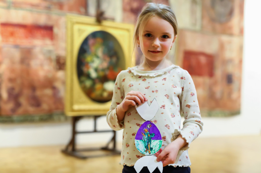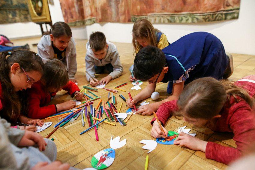 Látogatásunk alkalmával a múzeumpedagógia foglalkozás középpontjában Szentgyörgyi János 19. századi festő Csendélet nyúllal című képe állt. A gyerekek ezen keresztül ismerkedtek a húsvéti szokásokkal. Megtudhatták egyebek mellett azt is, hogy a lányok miért éppen tojást adnak ilyenkor a fiúknak, miért a nyuszi jön húsvétkor, és mindezek hogyan függenek össze az ünnep üzenetével, a feltámadással. A kis múzeumlátogatók minden apró részletet, még a legyet is felfedezték a képen, majd a szomszédos terembe indultak tojásokat keresni. Ezek olyan festmények alá voltak elrejtve, amelyek a szenvedéstörténet eseményeit és a feltámadást ábrázolják, s így alkalmat kínálnak arra, hogy a gyerekek gazdagíthassák az ezzel kapcsolatos ismereteiket. A foglalkozás végén a kisdiákok a különböző színek jelentését megismerve színezték ki maguknak azt az asztaldíszt, amely húsvétkor a családjuk otthonát ékesítette.