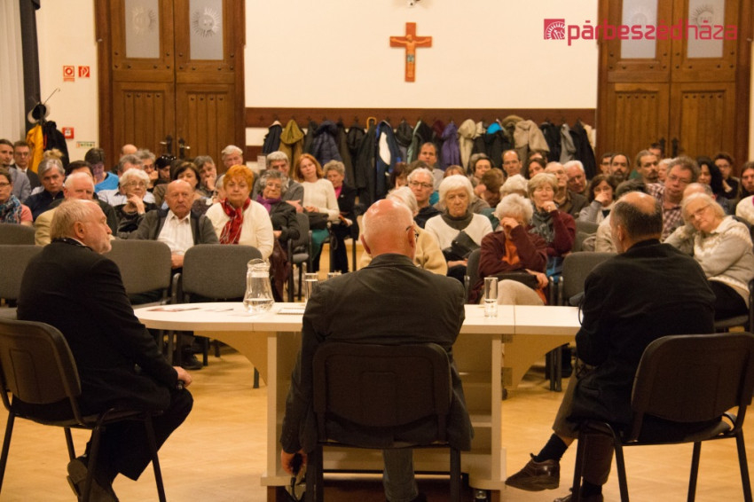 A film vetítése után Sajgó Szabolcs SJ, a Párbeszéd Háza igazgatója beszélgetett Lázár Kovács Ákos esztétával és Máté-Tóth András valláskutatóval.