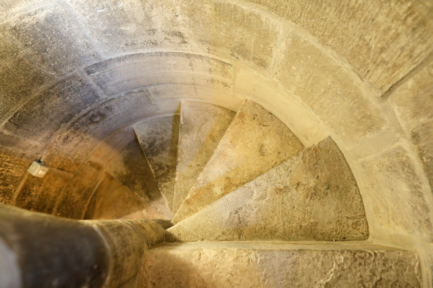 Nem tudni, hogy a két lépcsősor kialakításánál miért választották annak idején az egymásba fonódó szerkezetet.