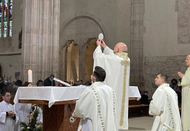 A templom legkorábban épült részéhez, a 20 méter hosszú és 10 méter széles szentélyhez érve szembetűnő, hogy a felújítás részeként új misézőoltár és ambó készült. A liturgikus bútorzat eddig a szentély első oszlopsorával volt határos. Most jó pár méterrel meghosszabbították a szentély járófelületét, és előrébb kapott helyet az oltár, mintegy a templom centrális elemeként, szíveként; közelebb került a hívekhez, még inkább szolgálva ezáltal a pap vezette közösségi szentmiseünneplést. A járófelület minőségi kivitelű megnagyobbításához kőlapokat használtak, így olybá tűnik, mintha eredetileg is így építették volna a szentélyt. László Attila a részletekbe is beavat.