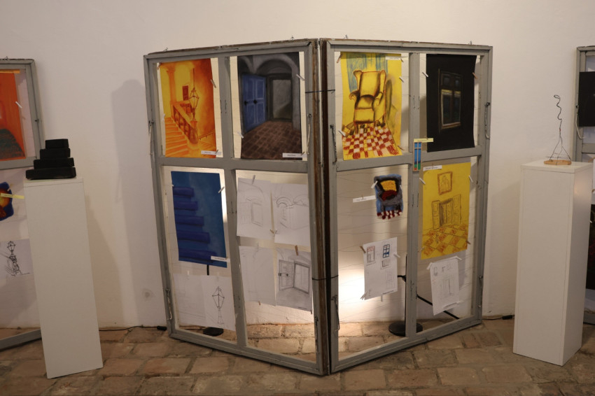 Szeptemberben mindenki ugyanebbe az épületbe érkezett, ugyanazt látta a szemeivel. A hónapok alkotómunkái során mégis más és más utat jártak be, és mindenki máshová jutott – fogalmazott az építész. – A vaskos falak, mély ajtónyílások, a lépcsőház monumentalitása és az emeleti enfiládé, az egymásból nyíló szobák tengelyesen átlátható térsora a legtöbb helyszíni vázlat témája. Másoknak az udvar egyik otthonos szeglete volt érdekes, vagy egy szép ornamentika.