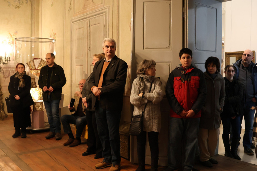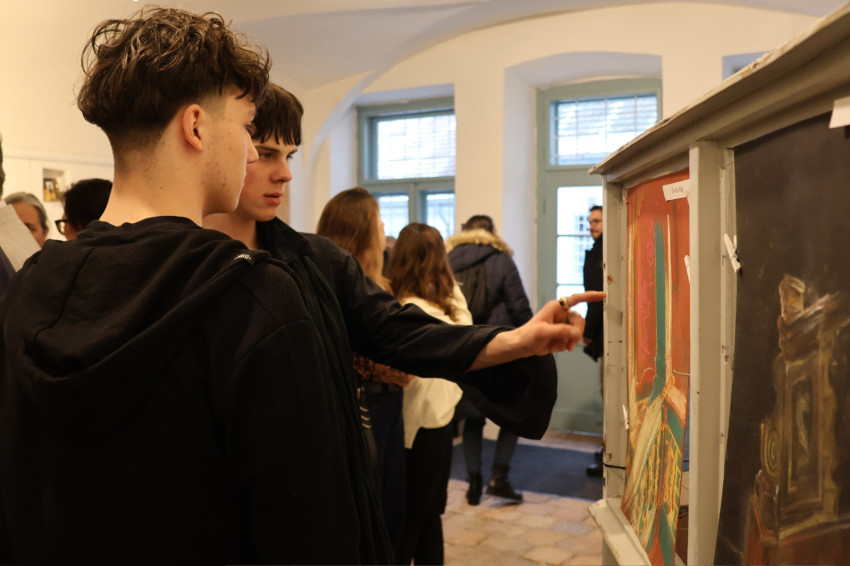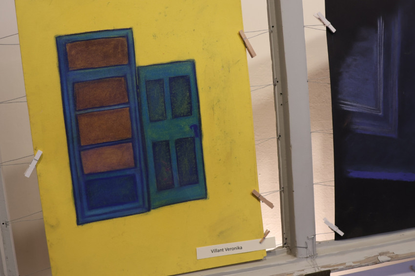 A tanárnő a múzeumnak otthont adó egykori nagypréposti palota későbarokk épületét választották témául. Az idei feladat a térábrázolás elsajátítása, az egy- és kétpontos perspektíva gyakorlása volt a palota belső tereivel, kifestéseivel, balluszteres korlátaival gyakorolva.