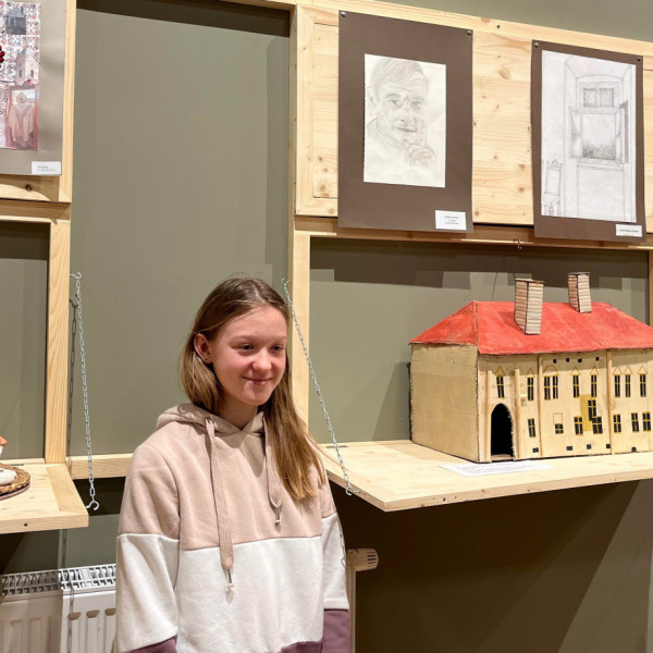 Ezeket az alkotásokat egészítették ki csíkszentdomokosi gyermekek munkáival, és így készült el a Márton Áron püspök szentelésére emlékező kiállítás. A kiállításon látható néhány makett is azon munkák közül, amelyeket a „Cselekvő iskola Márton Áron püspökkel” játék keretében készítettek erdélyi és magyarországi fiatalok, és amelyek a püspök életének egy-egy fontos helyszínét jelenítik meg.