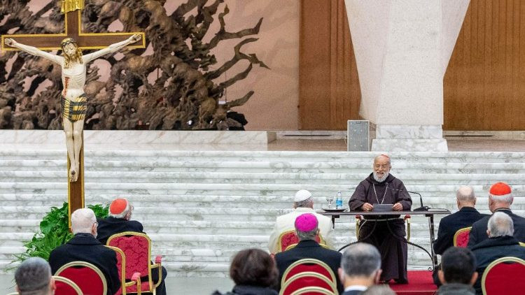 Izajás próféta adventben felhangzó szava Isten népét vigasztalja, az örök igazság fényével tekintve jelenlegi helyzetünkre, ahol minden gazdagság, szépség, egészség átmeneti és ideiglenes, vagyis minden elmúlik. Valóban vigasztaló azt felfedezni, hogy mégis van egy szilárd pont, amire törékeny földi életünket építhetjük. Ebben a „minden változásban” csak egyetlen dolog marad meg, ahogy Szent Ágoston látta: „Valóban, minden elmúlik ebből a világból, de van valami, ami nem múlik el ezzel a világgal. Ez a soha el nem múló pedig az örökkévalóság!” A keresztény ember számára az örök élet nem filozófiai okfejtés gyümölcse, hanem Krisztus feltámadásán alapul, ahogy ő maga mondja: „Azért megyek el, hogy helyet készítsek nektek. Ha aztán elmegyek, és helyet készítek nektek, újra eljövök, és magammal viszlek benneteket, hogy ti is ott legyetek, ahol én vagyok” (Jn 14,2–3). A keresztény ember örök élete valójában egy személy, a feltámadt Krisztus – hangsúlyozta a Pápai Ház szónoka.