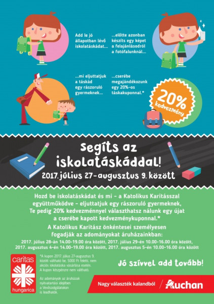 A felajánlott táskákért kedvezmény kupont kapnak az adományozók. Az iskolatáskákat a segélyszervezet önkéntesei juttatják majd el tanévkezdés előtt a rászoruló családoknak.