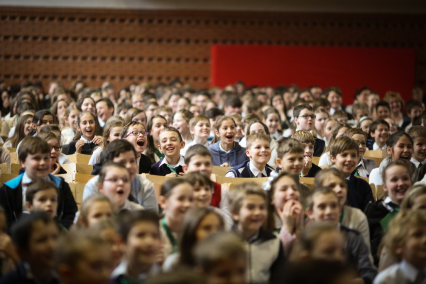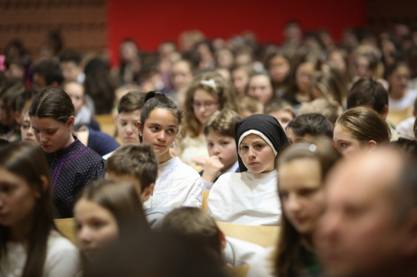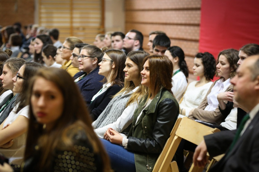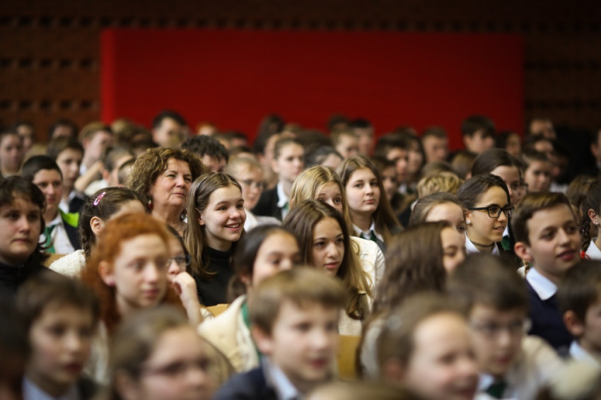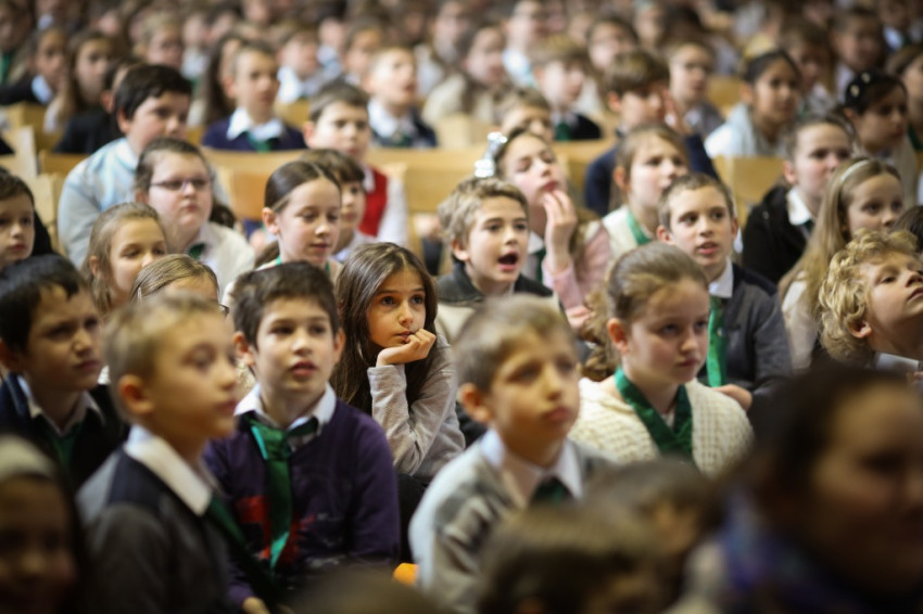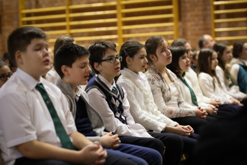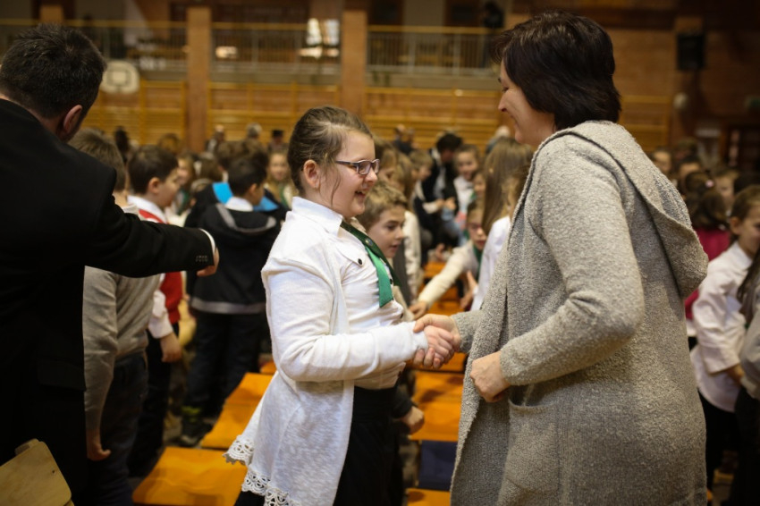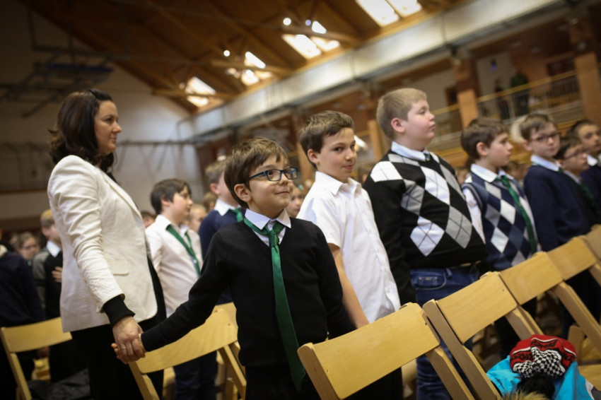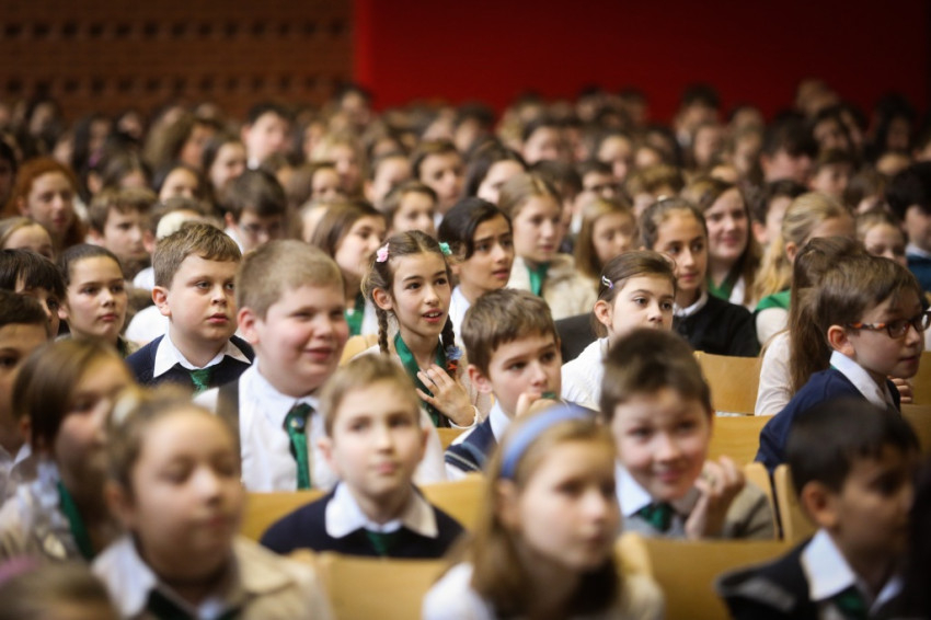 Soltész Miklós, egyházi, nemzetiségi és civil társadalmi kapcsolatokért felelős államtitkár a dísztermet megtöltő gyerekközösséghez Edmondo De Amicis A kőművesinas című elbeszélésének tolmácsolásával szólt, a nevelőknek pedig a katolikus iskola küldetéséről beszélt. Ma mintegy 120.000 gyerek tanul katolikus intézményben – mutatott rá a rendszerváltozás óta eltelt 25 év óriási gyarapodására. A katolikus iskola a tananyag közvetítése mellett a közösségépítés helye. Ez nem mérhető számokban, de hozzájárulása életünkhöz annál fontosabb – mutatott rá az államtitkár, és köszönetet mondott ezért az erőfeszítésért a nevelőknek.