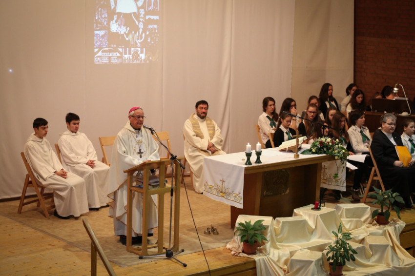 Az évet megnyitó szentmisét Gyulay Endre nyugalmazott püspök mutatta be. Szentbeszédében a nevelői hivatás felelősségéről elmélkedett a rendalapító, Terézia anya lelkiségét felidézve. „Ha meggyújtják a gyertyát, csonkig ég” – mutatott rá a fényt hozó Krisztus áldozatára, aki azért jött, hogy a fényben megmutassa, hogyan szeret bennünket Isten. „Feltámadása azt üzeni, érdemes vállalni az áldozatot.”
