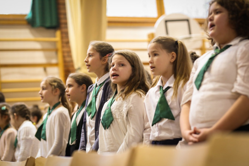 Az iskola a 25 év történetét egy fényképekből összeállított fotósorozatban dokumentálta, ezt nézték meg nagy kivetítőn. „Ahogy családi összejöveteleken fotóalbumot lapozgatva tekintünk vissza a közös élményekre, így ünnepelünk az iskola közösségében is” – ajánlotta a kisfilmet Lobmayer Judit a gyerekeknek.