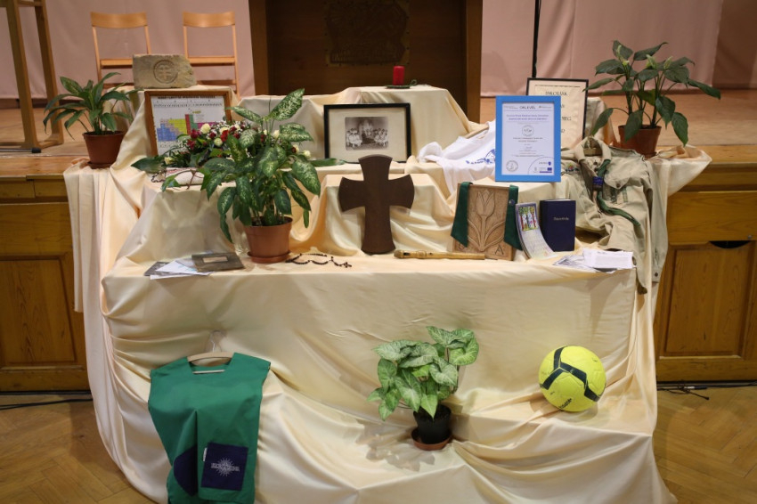 A jubileumi évre logó is készült, amely az iskolát 145 éven át megtartó hit, tudás, közösség fontosságát hirdeti. A megnyitón a Karolina művészeti iskolájának tanárai adtak műsort. A programon a jubileumi év fővédnöke, Antall Józsefné is részt vett.