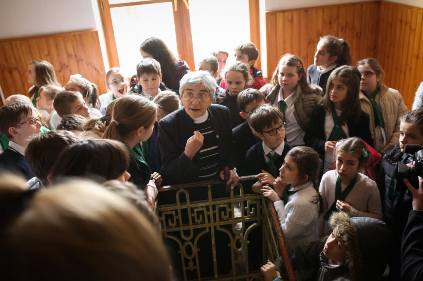Lobmayer M. Judit nővér, a Boldogasszony Iskolanővérek magyarországi tartományfőnöknője a jubileumi évet elindító beszédében párhuzamot vont a szentév kezdetével, amelyet Ferenc pápa a szent kapu megnyitásával fejezett ki. „Mi is megnyitunk egy szent kaput. Együtt – Judit nővér meghívta a diákságot, gondoljanak arra a helyre a Karolinában, ahol jól érzik magukat, amely otthonosságot jelent számukra és kifejezi az idetartozásukat. „Mondjunk Istennek hálát, hogy itt otthon lehetünk, és kérjük segítségét, hogy jól tudjuk járni utunkat. Tegyük meg ezt holnap, és többször az év során” – biztatta a hallgatóságot az igazgató.