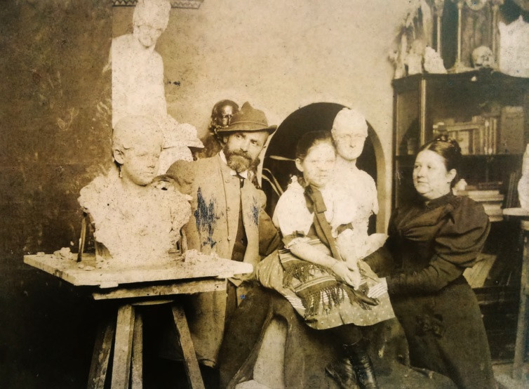 Morelli a műtermekben is fényképezett, nagy tiszteletnek örvendett a kollégái körében. Bejáratos volt Strobl Alajos műteremházába is. Az egyik képen Morelli Gusztáv felesége és lánya látható Strobl műtermében, a szobrász éppen az egyik készülő büsztjét mutatja meg nekik.
