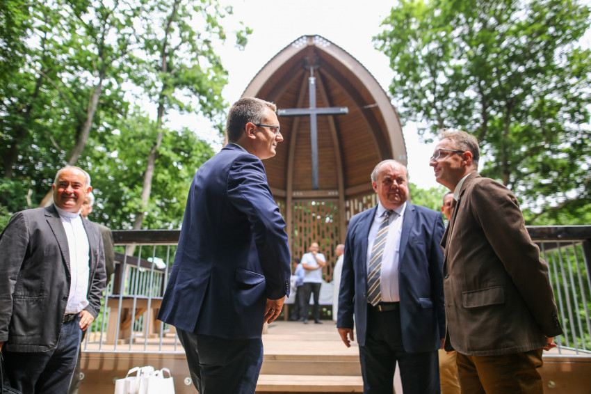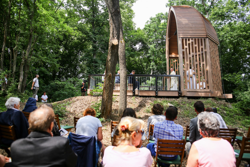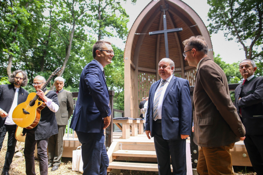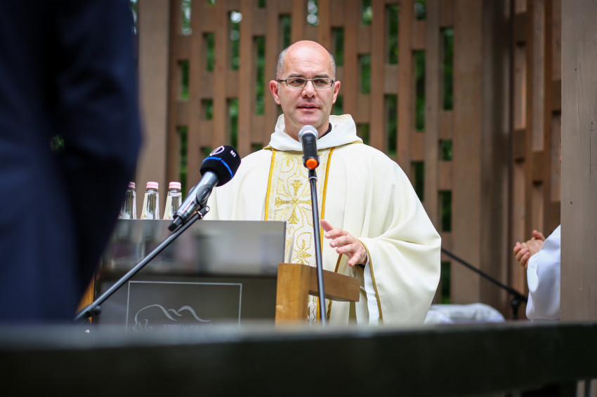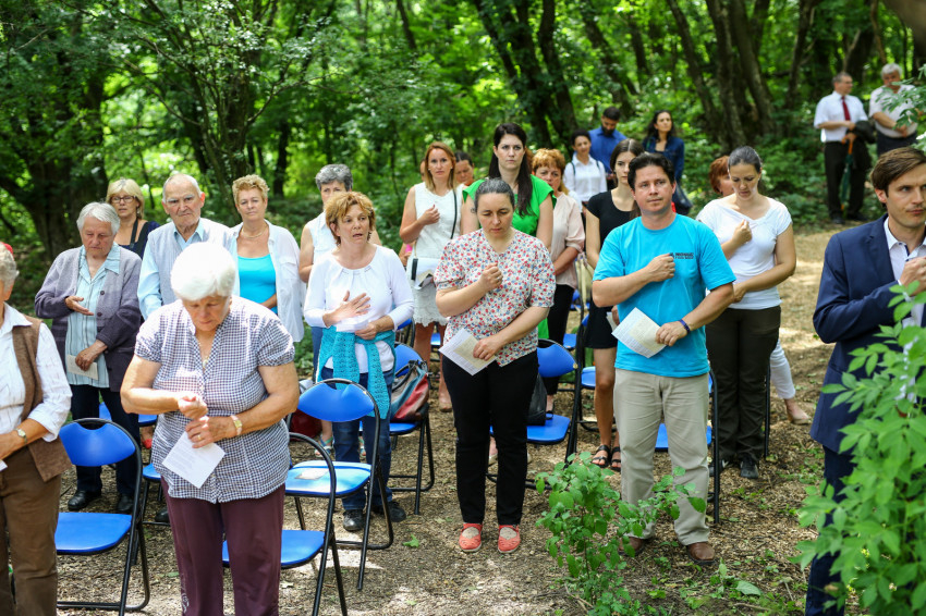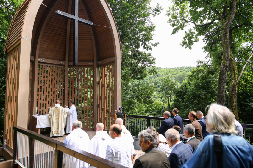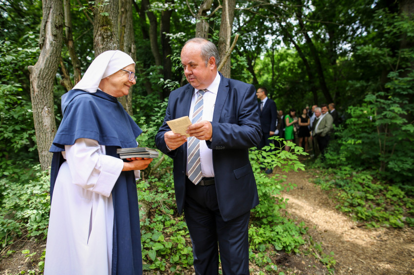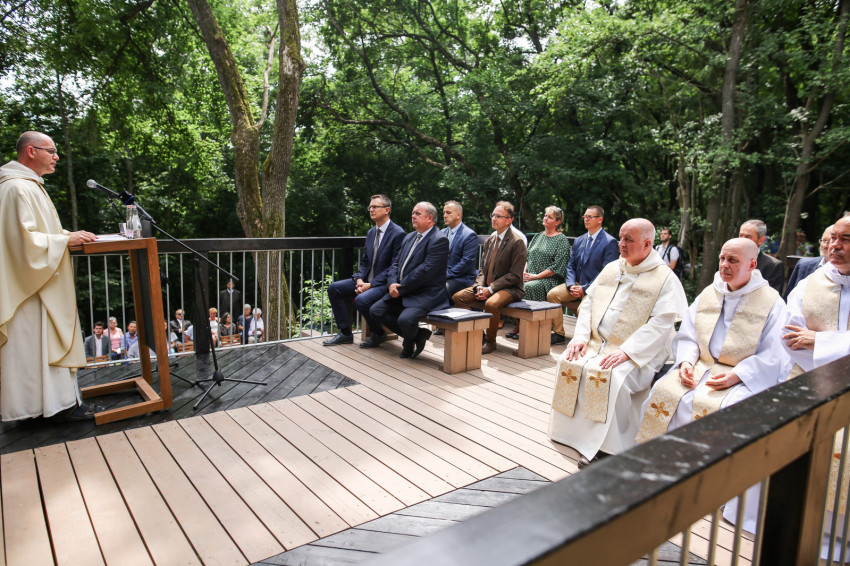 Puskás Antal a szentmisét követően megáldotta az emlékhelyet, majd köszöntők hangoztak el. Rétvári Bence, az Emberi Erőforrások Minisztériumának parlamenti államtitkára arra hívta fel a figyelmet, hogy a természetet járó, azt szerető és ebben élő ember „természetesen” gondolkodik. Saját bőrén tapasztal hideget és meleget, elfogadja az őt körülvevő világ törvényeit, tudatában van teremtettségének, képes úgy együtt élni a természettel, hogy tiszteletben tartja törvényeit. Természetközelisége megóvja a pusztító gondolatoktól és életellenes jelenségektől. Tudja, hogy a bajban össze kell fogni, hogy az életünket szilárdító gyökereket meg kell óvni.