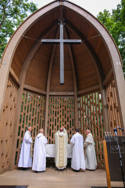 Az emlékhely elkészültét szentmisével ünnepelték. Puskás Antal főcelebránsnak, a pálos rend tartományfőnökének bevezető beszéde egyben köszönetnyilvánítás is volt az „ajándékért”. Az, hogy „hamvaiból” feltámadt az egykori templom szentélye, arról ad bizonyosságot, hogy nem halt ki az emberek szívéből a vágy az „isteni” után – fogalmazott. Az elöljáró mindazokért ajánlotta fel a szentmisét, akik időt, energiát és munkát szenteltek az emlékhely megvalósítására, akik itt összegyűltek és össze fognak gyűlni a jövőben, valamint az itt élt pálos elődökért.