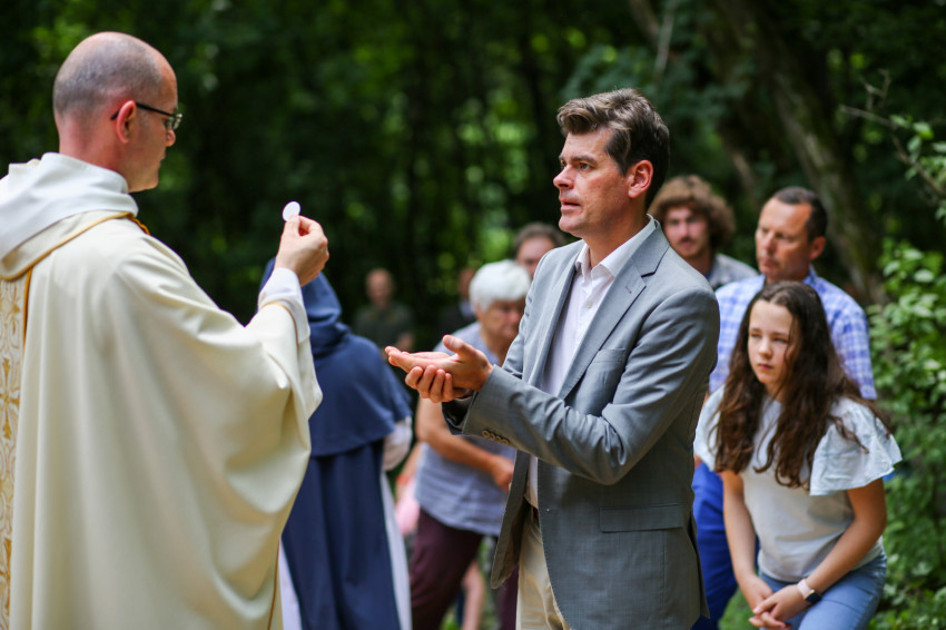 A környező falvakból – Kóspallagról és Szokolyáról – Temesvári Károly Benedek OSPPE plébános vezetésével nagy csoport zarándok érkezett. A vendégeket Kiss László, az Ipoly Erdő Zrt. vezérigazgatója köszöntötte. Bemutatta az erdőgazdaság törekvését, mely a „nyitott erdő” programmal válaszol a társadalom egyre szélesebb rétegeinek igényére. A táj természeti és kulturális értékeinek feltárásával, megőrzésével és bemutatásával kívánják gazdagítani a természetjárást. Ezt célozza számos fejlesztés, így a Julianus- és a csóványosi kilátó, a kirándulóközpont Katalinpusztán és Királyréten, vagy a börzsönyi kisvasút felújítása.