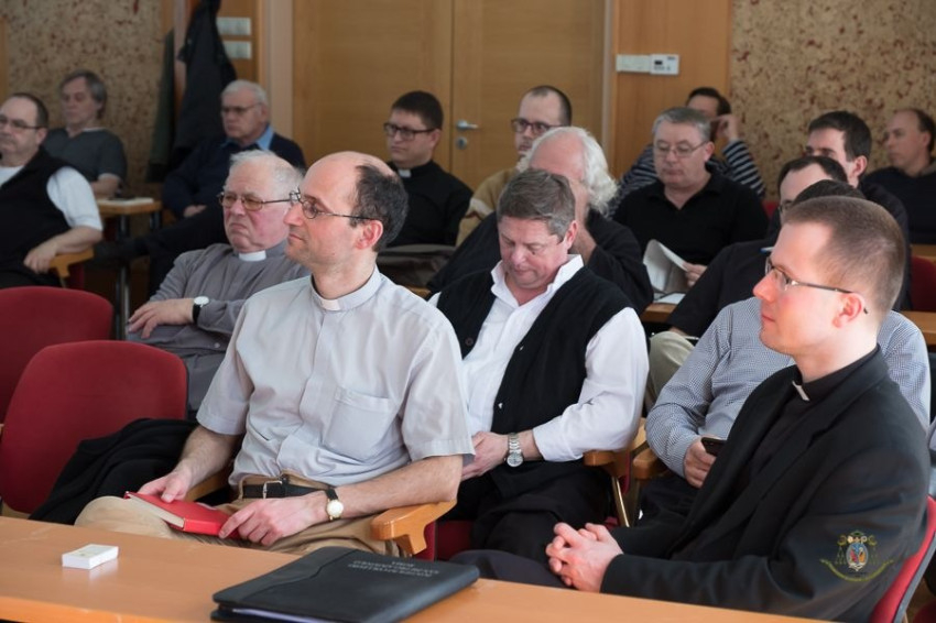 Az előadást követően a résztvevők csoportokban fogalmazták meg válaszukat három kérdésre: Mit jelent számukra most a szenteléskor választott papi jelmondat? Hivatásuk kapcsán mit érzékelnek keresztnek, amelyet napról napra fel kell venniük? A nehézségek és küzdelmek ellenére mi az az erőforrás, amelyből megújulhat hivatástudatuk?