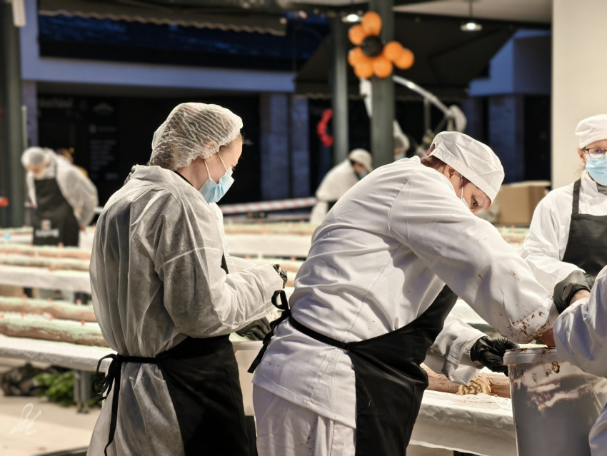 A rekordkísérlet, melyben az eredeti cél az volt, hogy egy 160 méteres fatörzs süteményt készítsenek, végül minden várakozást felülmúlt: 184 méteresre sikerült a sütemény, ezzel hitelesített magyar rekord született.