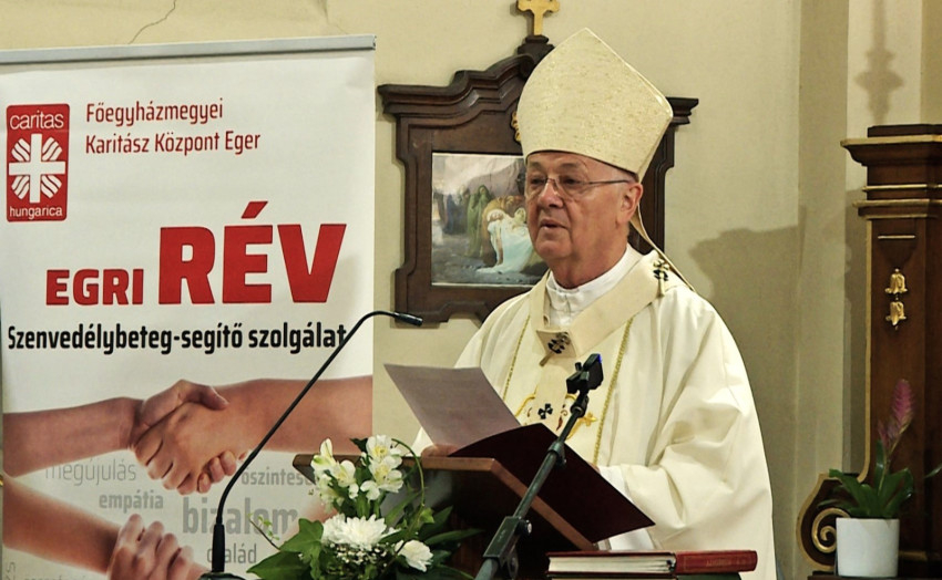 Prédikációjában a főpásztor társadalmunk nehézségeit és az azokra adott válaszokat vette sorra. Az a kor, amelyben élünk tele van igazságtalansággal, erőszakkal, háborúkkal, a békétlenség egyre inkább eluralkodik a nemzetek között. Az erősebbek és nagyobbak uralkodni akarnak a gyengébbeken. És ez így van az emberek közötti kapcsolatokban is. Vannak, akik kihasználják a kisebbeket, megalázzák a gyenge idegzetűeket. Sokan ebből az embert próbáló feszültségből a szenvedélybetegség hálójába kerülnek. Azok, akik segítő szolgálatokban tevékenykednek, mint a 25 éves egri RÉV munkatársai, rengeteg csapdába került embernek segítettek felállni és mutatták meg számukra a kiutat. „Hálásak vagyunk nekik, és hálásak vagyunk Istennek, hogy az ő eszközei lehetünk, hiszen a mi kezünket és lábunkat használja, hogy odaálljunk a rászorulók mellé” – mondta Ternyák Csaba, és arra buzdította a jelenlévőket, hogy szolgálják hittel és bátorsággal embertársaikat, hiszen ez a szolgálat hitelesíti az evangélium igazságát.