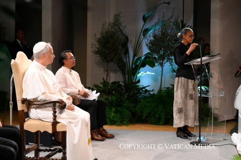 A pápa jelenlétében beszédet tartott Marina Silva, Brazília környezetvédelmi és éghajlatváltozási minisztere, a COP30-elnökség vezetője; valamint Arnold Schwarzenegger, Kalifornia korábbi kormányzója, az USC Schwarzenegger Állami és Globális Politikai Intézet és a Schwarzenegger Klíma Kezdeményezés alapítója.