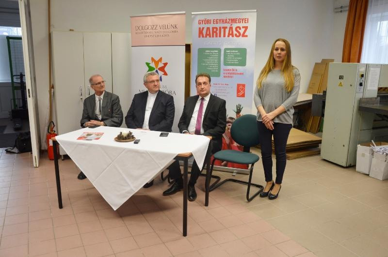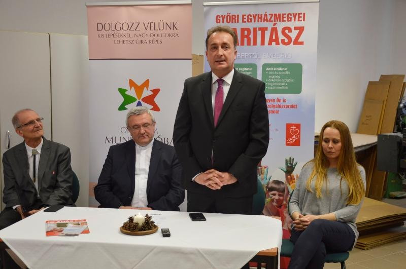 A Győri Egyházmegyei Karitász, a Get Work Trend Kft., valamint az Optimum Munkapróba Központ együttműködésével jött létre reintegrációs központ. A sajtótájékoztatón jelen volt a megyéspüspök mellett, a Get Work Trend Kft. képviseletében Őri Dóra, valamint Simon Róbert Balázs országgyűlési képviselő.