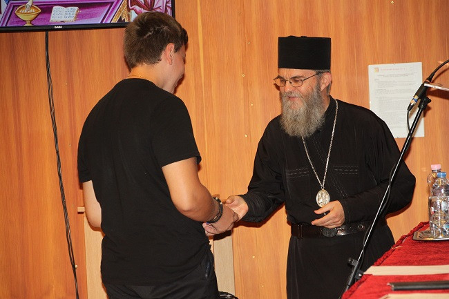 A díjkiosztó ünnepségen Orosz Atanáz püspök buzdító gondolatait meghallgatva vehették át a nyertes tanulók a megérdemelt jutalmat.