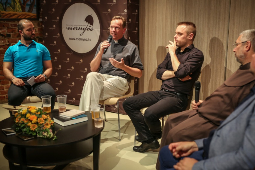Fábry Kornél katolikus és Boros Dávid baptista lelkész már ismerős kettőse Kiss Didák ferences szerzetessel és Márkus Tamás református lelkésszel egészült ki. A moderátor a sorozat budapesti szervezőgárdájának tagja, Hortobágyi Ferenc volt.