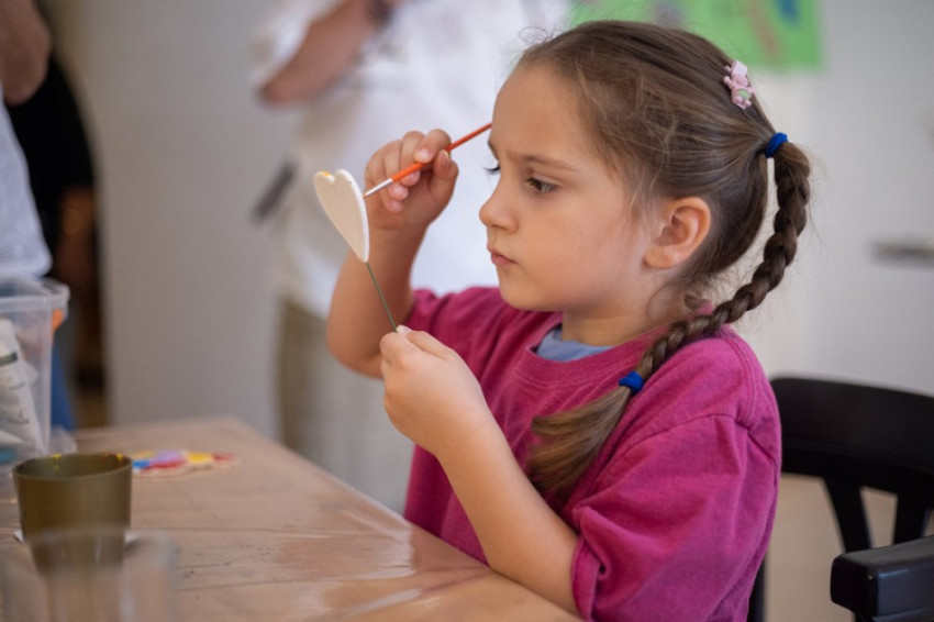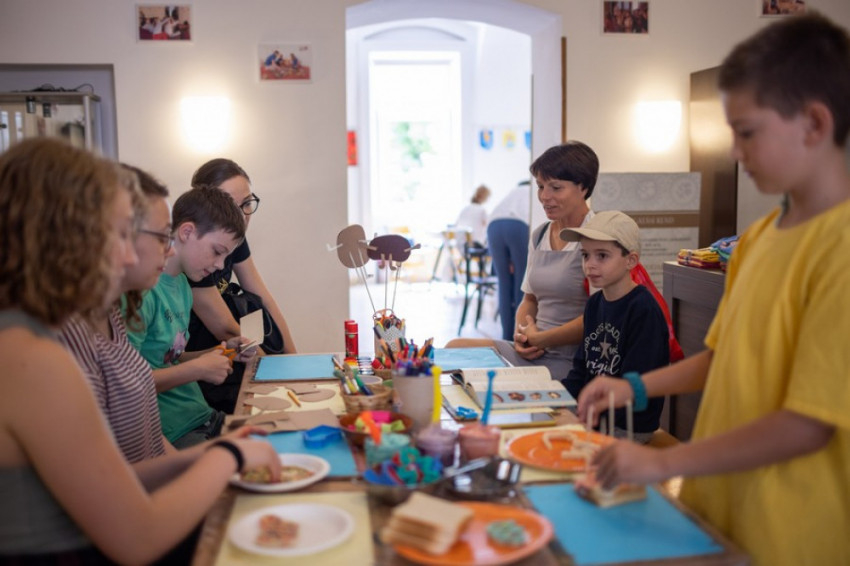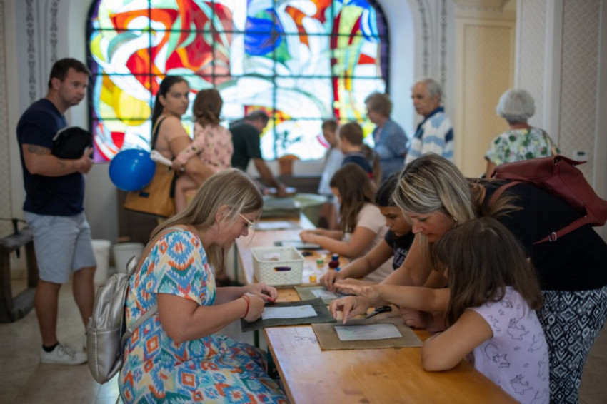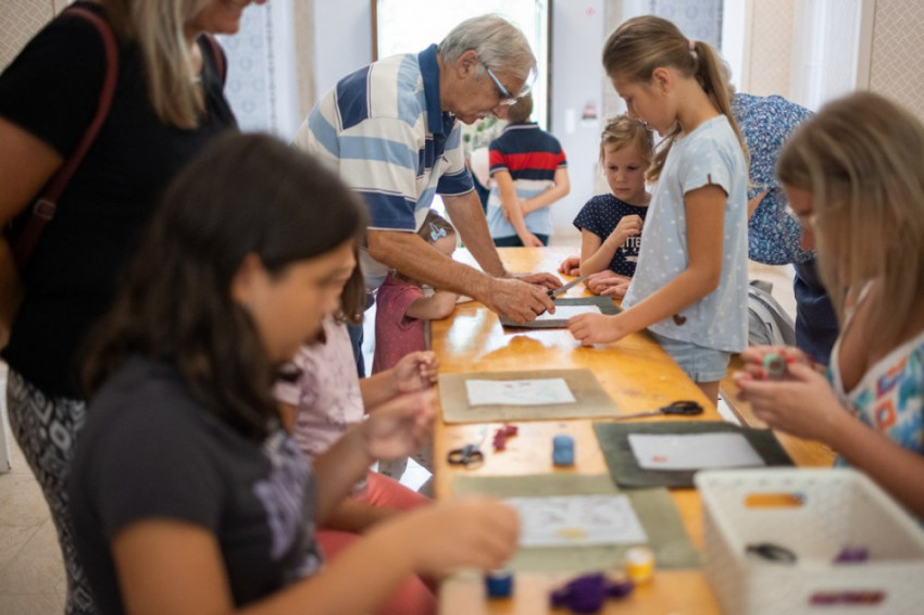 A Püspöki Kincstár egyháztörténeti kiállítása nem akármilyen díszletet kölcsönzött az egész nap folyamatosan egymást érő múzeumpedagógiai és kézműves-foglalkozásoknak: papírmerítés, kerámiafestöde, origami, selyemfestés várta az érdeklődőket.