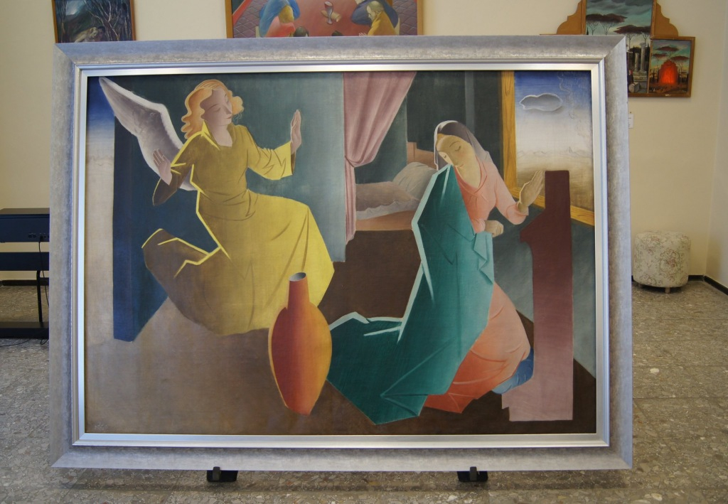 A művész születésének 125. évfordulója alkalmából megtartott ünnepségen Krucsainé Herter Anikó, az Emberi Erőforrások Minisztériumának kulturális ügyekért felelős helyettes államtitkára elmondta, hogy az 1929-ben készült festmény, amely az imádkozó Máriát és Gábriel arkangyalt ábrázolja, az évek során erősen megrongálódott. A restaurálásra a szaktárca támogatásával került sor, így az emlékházban már negyvennégy festményt őriznek.
