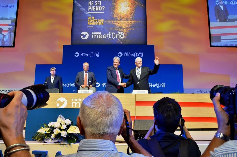 Érdekes párbeszéd zajlott a nagyelőadóban Joseph Weiler, az Európai Egyetemi Intézet elnöke és Julián Carrón, a Comunione e Liberazione mozgalom Fraternitásának elnöke között; a moderátor Monica Maggioni, a RAI, az olasz közmédia vezetője volt. A Rimini Meeting e központi eseményének témája: Ábrahám, az emberiség öntudatra ébredése, az énkép kialakulása.