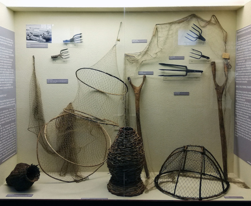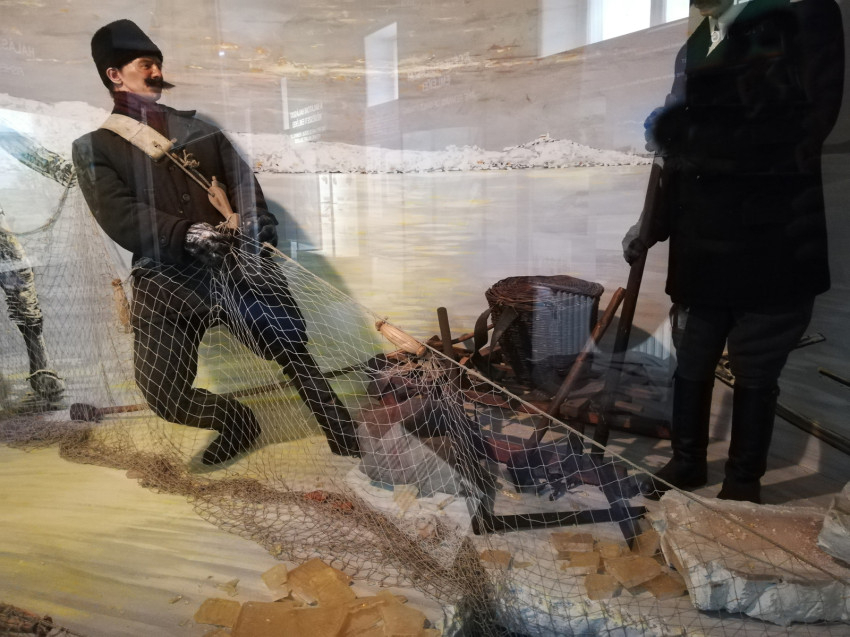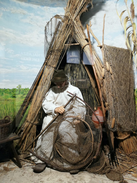 Egyetlen fából faragták ki ezt rendkívül ingatag járművet, ezért is nevezték őket lélekvesztőnek. A deszkahajók csak a 19. század hatvanas éveitől kezdték kiszorítani ezeket a nehézkes alkotmányokat. Túl sok nem maradhatott belőle, itt a kiállításon régi halászháló társaságában megnézhetünk egy szépen restaurált példányt. A víz és a nádas közelében épített halászkunyhót láthatunk diorámaként megépítve. Remek életkép készült a téli halászatról is, amint éppen a jégből kivágott léken át húzza ki a halász a halakkal megtelt hálót. Szerencsére maradtak fényképek is a balatoni halászat idejéből, hiszen mára megszűnt a nagyüzemi halgazdálkodás. A Balaton nyílt vízfelületén halászbokrok, illetve céhek halásztak. A tó téli jég alatti halászata különösen eredményes volt, gyakran egy húzásra több száz mázsa halat fogtak. A jeges halászat úgynevezett öreghálója körülbelül kétszáz méter hosszú volt.
