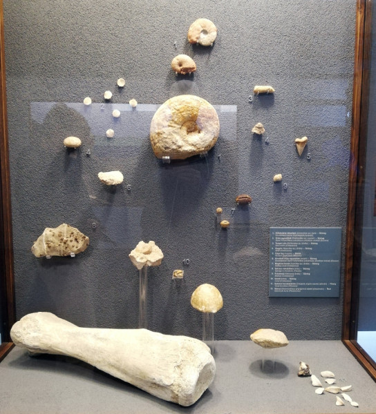 E 19. századi festményen a déli partról szemlélve láthatjuk a Badacsony mindent meghatározó vonulatát. Ha tovább megyünk, egy nagyméretű térképen és kisebb információs táblákon végigkövethetjük a Balaton megszületését A részletes geológiai térképet az 1869-70. év felvételei alapján Lóczy Lajos, a Balaton legnevesebb kutatója reambulálta, szerkesztette 1920-ban. Megtudhatjuk azt is, hogy a tó úgy keletkezett, hogy egy Balaton nevű óriás egy hatalmas sziklát kirántott a helyéről, ahonnan víz tört fel, és így keletkezett Közép-Európa legnagyobb tava. Persze, ez csak legenda, szép mese, amely azonban arról tanúskodik, hogy nem csak a tudósokat foglalkoztatta a tó születése. Külsővázas lábasfejű, óriás egysejtűek, cápafogak, puhatestűek, balatoni kecskekörmök, mamut – ilyen és ehhez hasonló egykori lények maradványait láthatjuk egy elég nagy vitrinben.